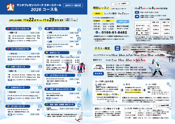 上記「サンタプレゼントパークスキースクール」以外の教室として